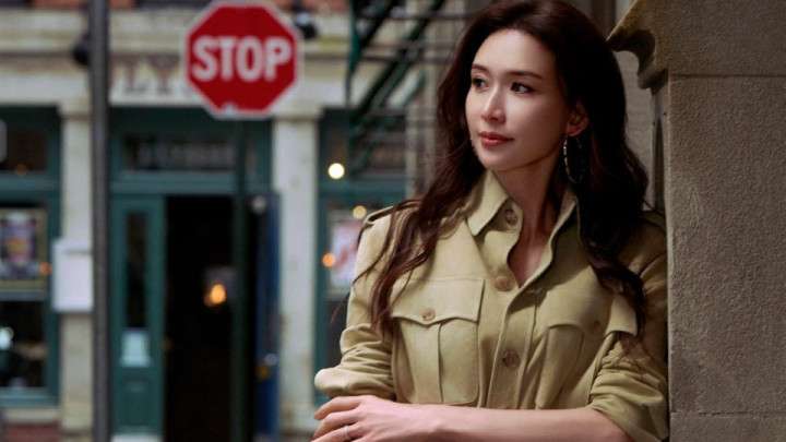 #林志玲 时尚街拍大片, 连身短裙搭配细高跟凉鞋身材高挑